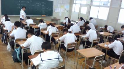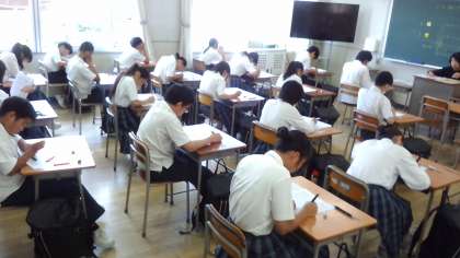 中間テスト2日目、理科の様子です。みなさん集中して問題に取り掛かっています。