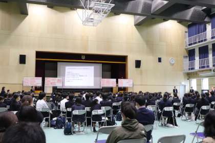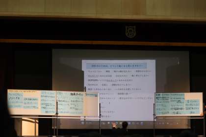 11月15日(土)に行われた未来サミットに成南中学校の生徒会長と副会長が参加しました。SNS利用によるいじめ問題について各学校の生徒会と交流し、解決方法について話し合っていました。