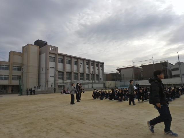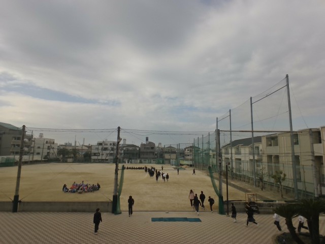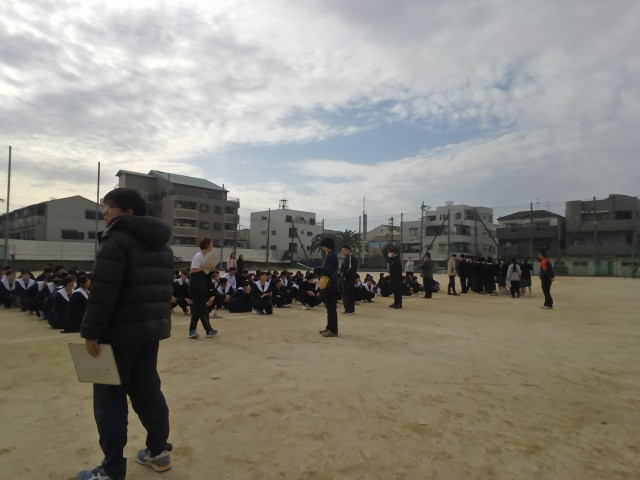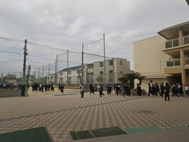 地震訓練、技術室の火事を想定してのグランドへの避難訓練、津波を想定しての校舎避難訓練を行いました。