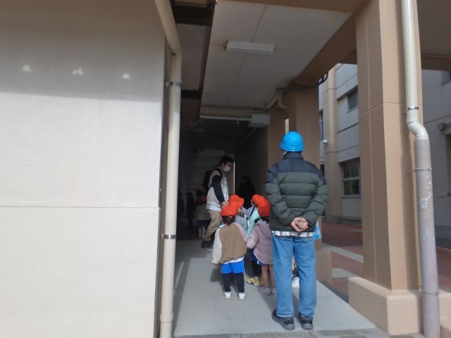 グランド隣の聖化保育園との合同避難訓練を実施しました。