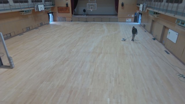 体育館の改修工事は25日に終わる予定です。綺麗になったフロアが見られるのも楽しみです。