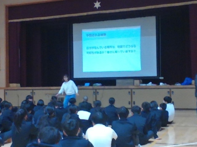 本校、2年生対象に防災、減災、自然災害についての学習を深めるために来ていただきました。