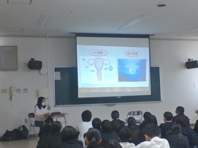 1年生性教育で講師を招き、テーマ「思春期・いのちの誕生」について講話がありました。