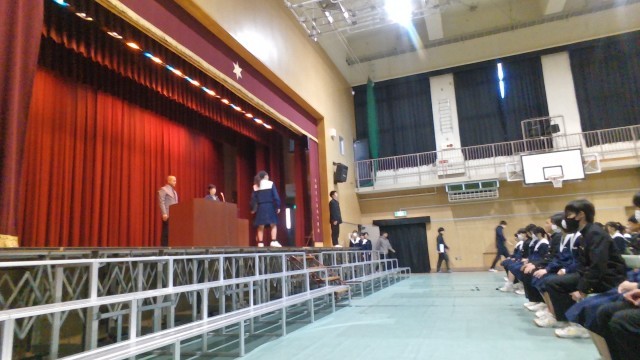 卒業式を明日に控えて、今日は2・3時間目に予行練習を行いました。参列する在校生や吹奏楽部も参加し、本番に近い形で通して練習をしました。卒業生も在校生も程よい緊張感の中でしっかり頑張っていました。