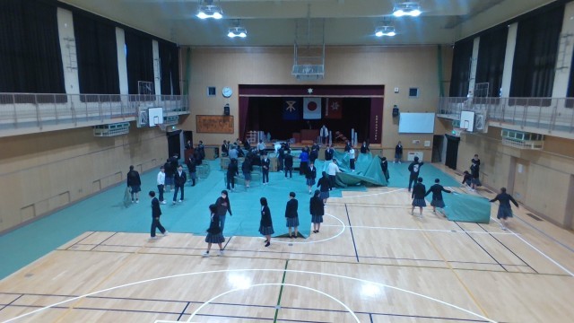 午後から在校生が明日の卒業式に向けて準備に取り掛かってくれています。体育館の会場設営をはじめ、玄関ホール、廊下・階段、控室等を丁寧に掃除しています。おかげさまで、卒業生は清々しい気持ちで明日を迎えられそうです。在校生の皆さんありがとうございます。
