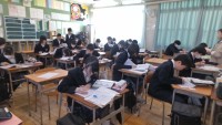 2年生の社会、英語、理科の様子です。 理科は簡易の実験器具を使って気圧の学習をし...