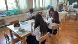 11月11日(木)、授業の様子です。 1年生、2時間目、美術「屏風 美のしかけ」...