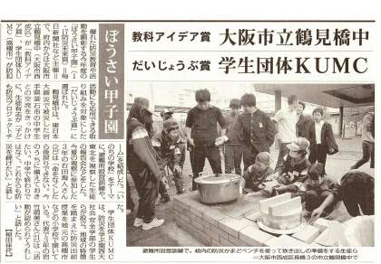 今年で10回目の開催となったこのぼうさい甲子園で、鶴見橋中学校は《教科アイデア賞》を受賞することが出来ました。