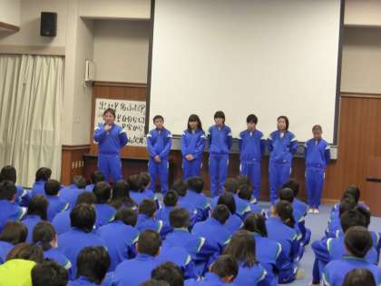 3年生のリーダーたちが「鶴中未来宣言」をおこないました。1・2年生は大きな衝撃を受けたようです。