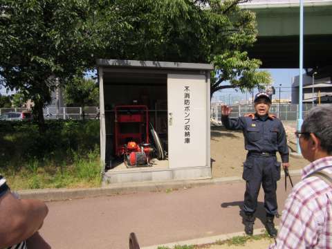 災害備蓄倉庫の位置を確認し、改善すべき点を教えていただきました。