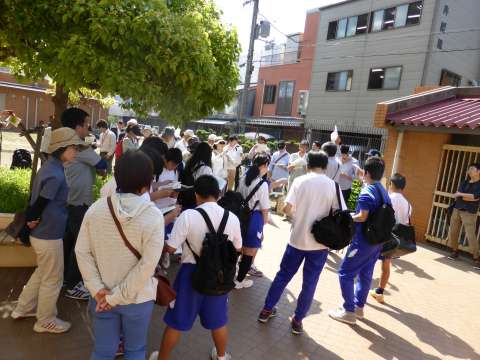 多くの地域住民の方々と一緒にまち歩きスタートです。