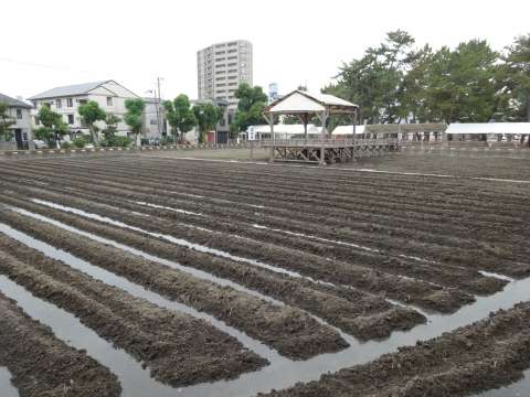 防災栽培として今年は「さつまいも」と「勝間南瓜(こつまなんきん)の苗を定植しました。