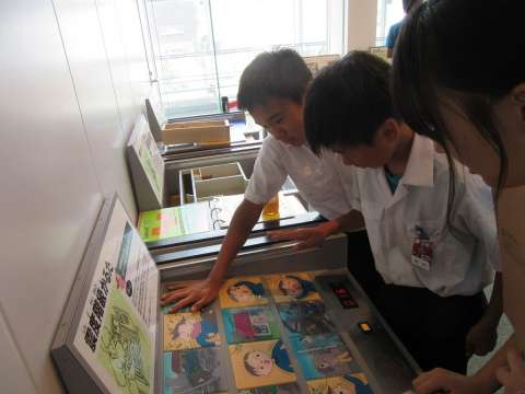 「3Dシアター」で災害時の行動や濱口梧稜さんの功績を学習しました。
