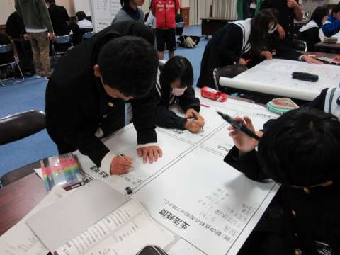 学校に戻りフィールドワークのまとめを行いました。一人一人が様々な視点で活動を振り返りました。