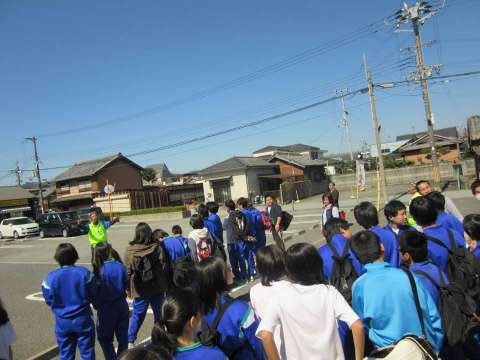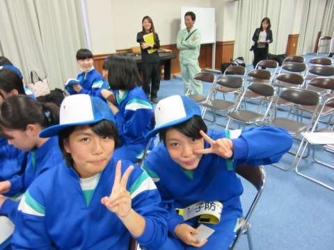 長橋小学校で行われた土曜授業・避難訓練に本校子防プロ5名が参加し、小学生の子どもたちに向けての発表と避難訓練の誘導を行いました。
