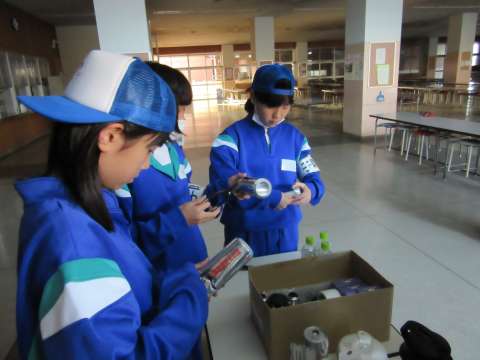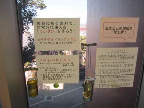 災害時の非常用ランタンなどの作り方を展示してありました。