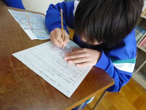 自分の家の位置を確認し、避難所へはどういう経路をたどって避難するのがよいのかについて考えました。