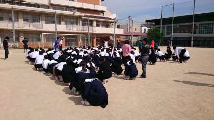 その後、全学年で避難訓練を行いました。特に1年生は、避難放送があってから1分以内には運動場に整列できるほど、それぞれが意識を高めて取り組むことができました。