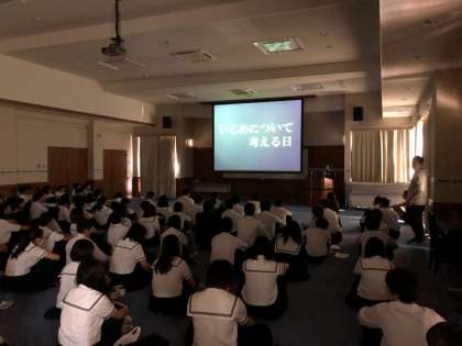今日の全校集会は、「いじめについて考える日」という内容で取り組みました。