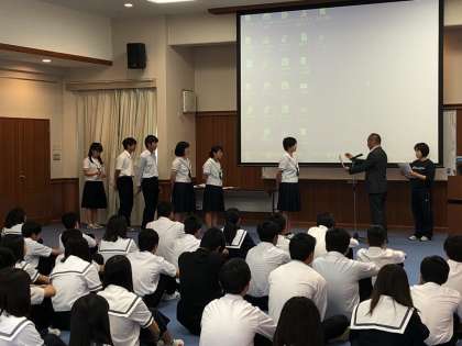 また、今日の全校集会では、生徒会執行部や学級役員の認証式を行いました。