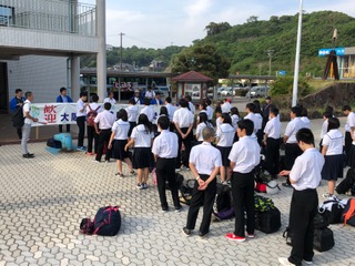 入島式では、垂れ幕やお土産などを用意していただき、大歓迎してもらいました。