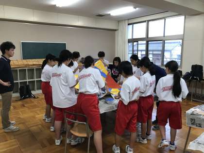 体育大会に向けて放課後に有志で集まってもらった子どもたち中心に「学級旗」の作成を行いました‼