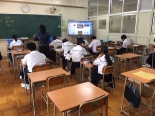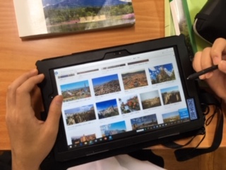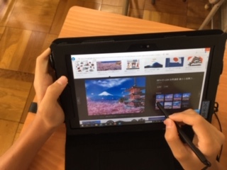 タブレットを使って、それぞれがいろいろな国の文化・スポーツなどを調べて発表します。