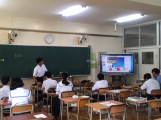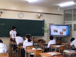それぞれがタブレット端末で調べた各国の文化・スポーツなどを、液晶テレビを使って発表しました。