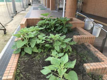 1学期の4月に植えた「はるかのひまわり」は生徒の水やりや雑草抜きの手入れなどで大きく成長しています♪