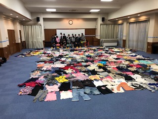 子ども服と、ペットボトルキャップの梱包作業を行いました。