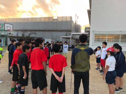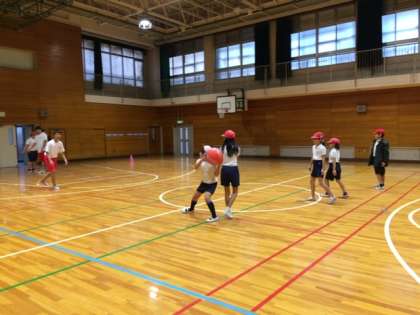 放課後に中学生が小学校を訪問し、一緒にスポーツを楽しみました。