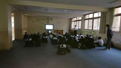 今週は担任の鱠谷先生から映像も使った話がありました。