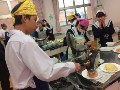 班の仲間と協力して楽しく調理でき、おいしいオムライスとコンソメスープが完成しました!
