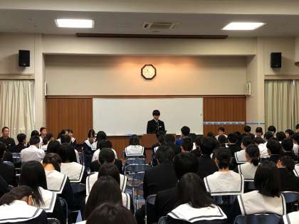 今日は、きずなクラブの司会で、学年で選ばれた15名の代表生徒の作文が、全校生徒の前で披露されました。