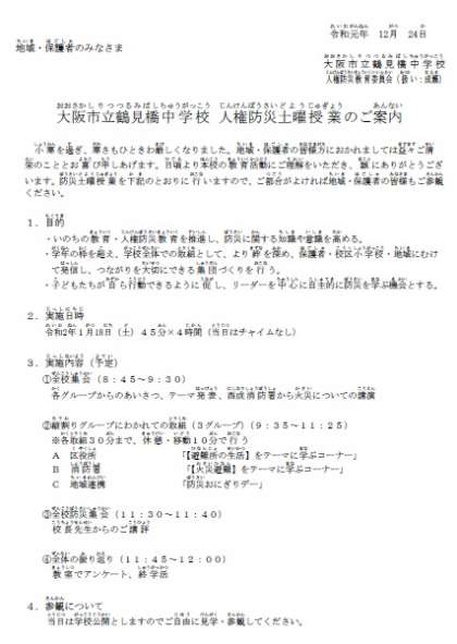保護者の皆さまもお時間のある方は、お越しください。