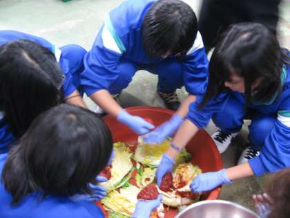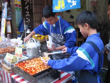 11月13日(木)に生野区のコリアンタウン周辺(猪飼野)へ1年生の取り組みとして、フィールドワークに行ってきました。午前中は、各自お店に分かれて1時間だけのプチ職業体験を行い、お昼は、みんなが働いたお店から買い集めた料理をおなか一杯食べ、午後は、猪飼野地域を各班に分かれて問題を解きながら散策しました。活動はとても充実し、有意義かつ楽しくおいしい時間となりました。心配していた時間を守れるかという点については、朝の遅刻生徒は1名、ぎりぎりに集まる生徒は半数いたものの、活動時間に遅れることなどがなく、スムーズに動けたことは今後の行事にも引き継いでいきたいと思いました。