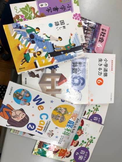 そこで、小学校の先生に、まだやり残している内容を聞き取り、小学校の教科書を借りました。