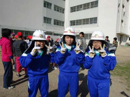 発表を行ったメンバーも、その後の避難訓練に参加しました。消防署による様々な体験や地域の防災リーダーによる避難訓練など、地域を巻き込んだ訓練に参加することで、中学生たちもリーダーとしての自覚が持てるようになったと思います。