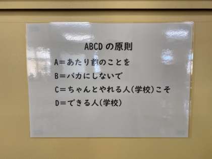 また、校長先生の話にもあった、ABCDの法則に関する貼り紙もされています。