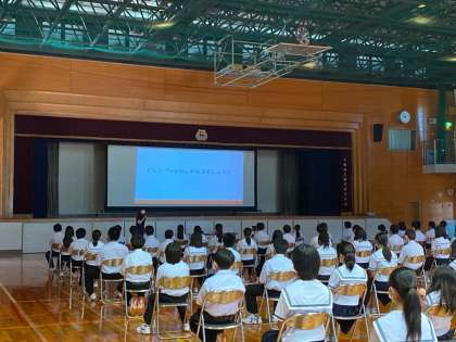 校長先生のお話の後、生活指導部の先生から、いじめの内容について映像を交えながら説明がありました。