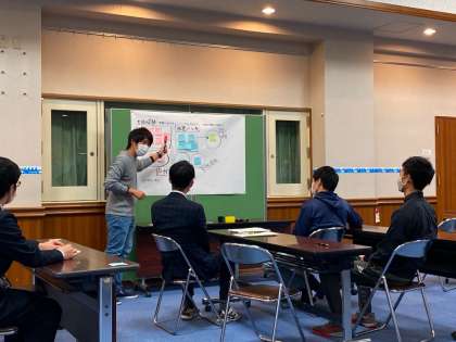 放課後には、「生徒が主体的に学ぶことができる工夫」をテーマに、研究討議を行い、教育委員会の指導員の先生方からも助言をいただきました。