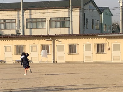 運動場で行った凧揚げは、良い天気でしたが、風がなかったので少し揚がりにくかったかもしれないですね。