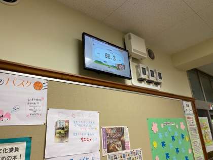 図書室前に、太陽光発電の発電量確認モニターが取り付けられました。