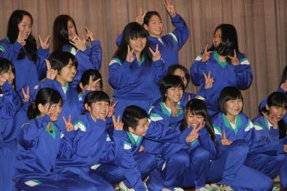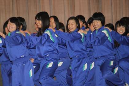 発表会の直前に3年生は高校入試、1・2年生は学年末テストがあり授業中に作品つくり、踊り込みの時間を十分にとることができませんでした。しかし時間を見つけては練習をし、当日の朝は練習の為に体育館を開放したところ、クラスやグループで声をかけあって集まり、熱心に最後の踊り込みをしていました。