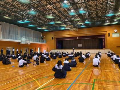 昨年度は、全校集会を放送で実施していましたが、今年度は体育館で実施することになりました。