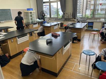 本日は「大阪880万人訓練」に合わせて、避難訓練を実施しました。大阪府内で大雨警報が発表されたため、「大阪880万人訓練」は中止となりましたが、本校では強い地震に備えて、机の下に隠れて頭や体を守ることを実践しました。