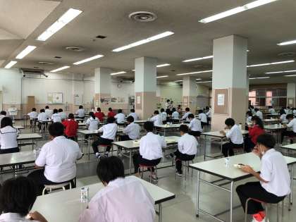 全員前を向いて、静かに食べています。