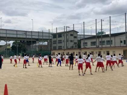 3年生、体育大会に向けて、ソーラン節の練習です。