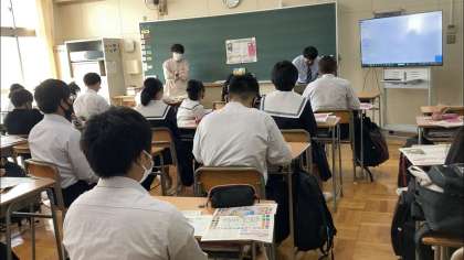 2年生、1時間目、国語「キャッチコピーをつけよう」の授業です。
