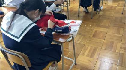 10月26日(火) 1年生 家庭科 「刺し子で三角巾を作ろう」